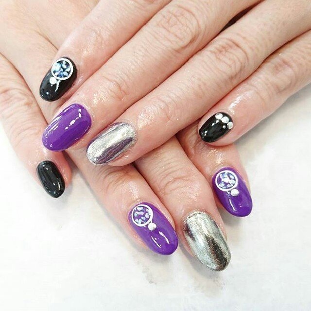ネイルシンプル 黒 紫 大人系 フリマアプリ サイトshoppies