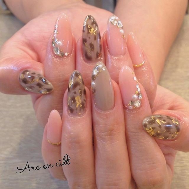 秋 冬 ハンド レオパード ロング Arcenciel Nailのネイルデザイン No