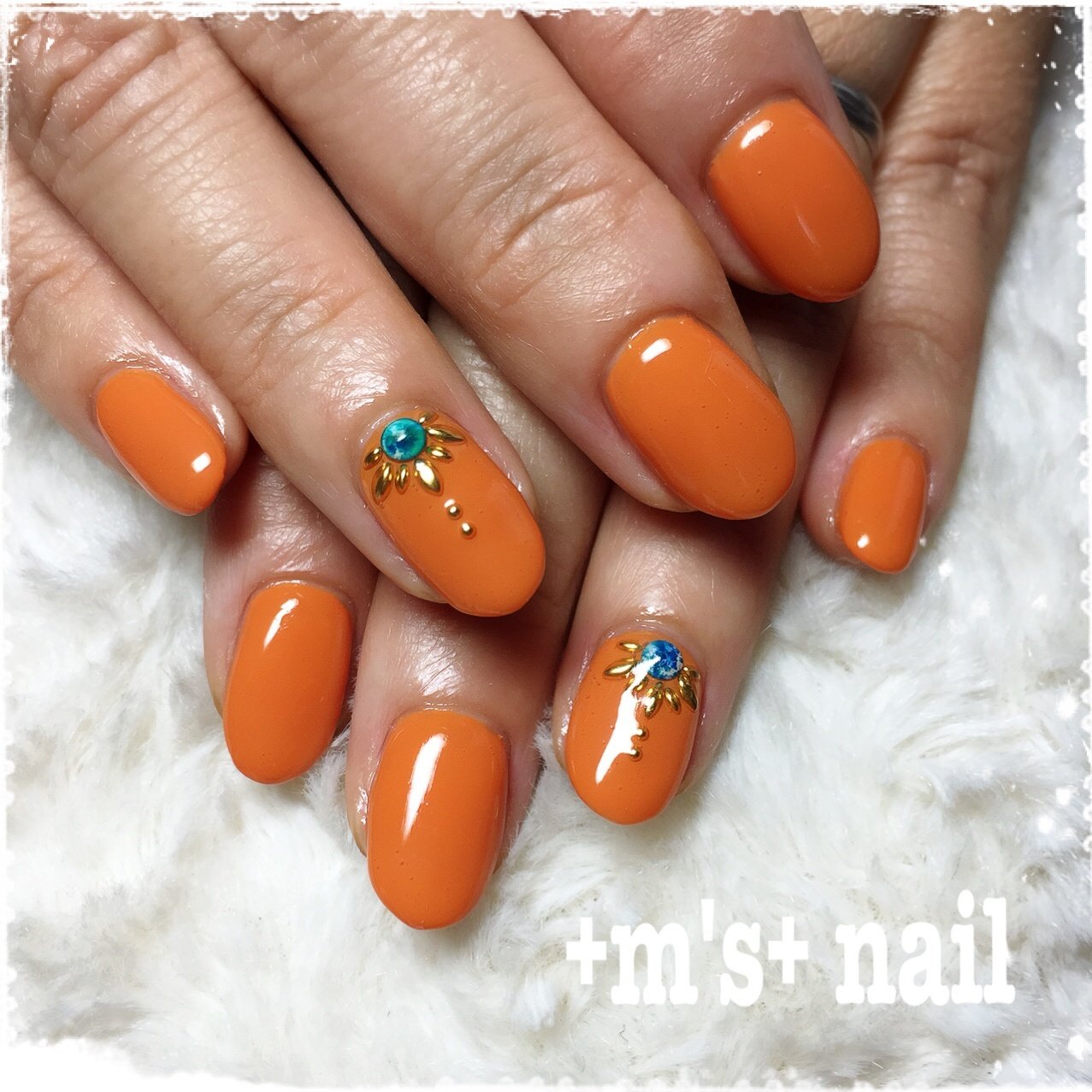ワンカラーネイル オレンジ系が増えてきました 夏に向けて暖色