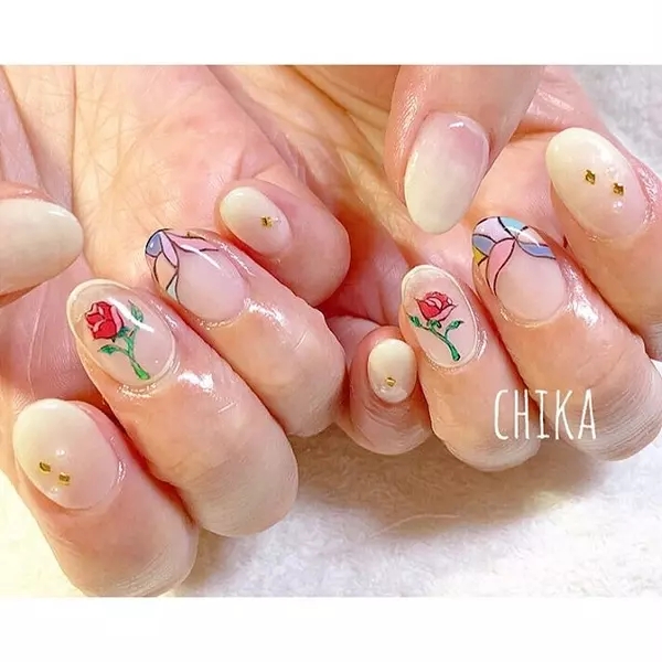 ネイルチップ ステンドグラス風薔薇ペイント 結婚式 ウェディング