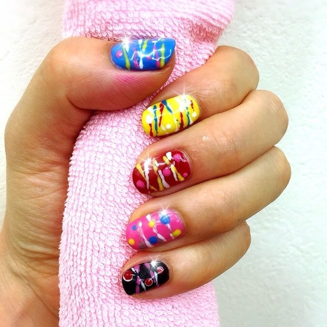 浴衣 ハンド カラフル ジェル セルフネイル Yukai696のネイル