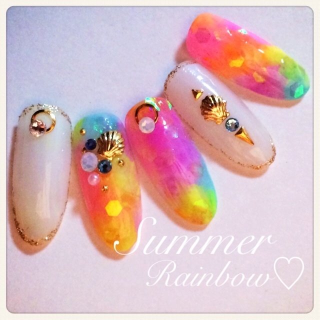夏 新作 派手 カラフル 夏 ネイル