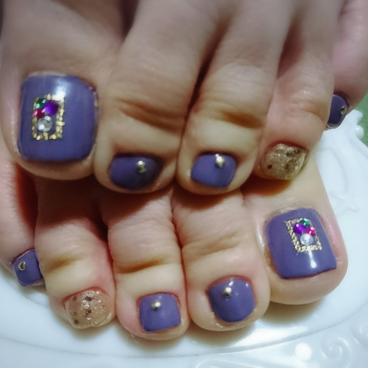 フット シンプル ワンカラー パープル ゴールド はる のネイル