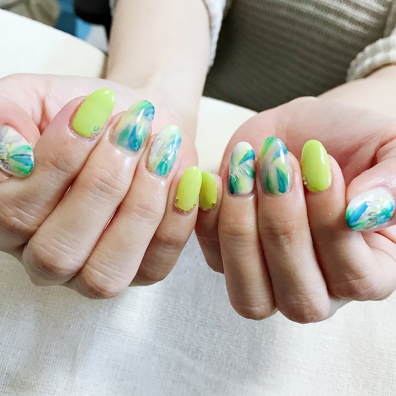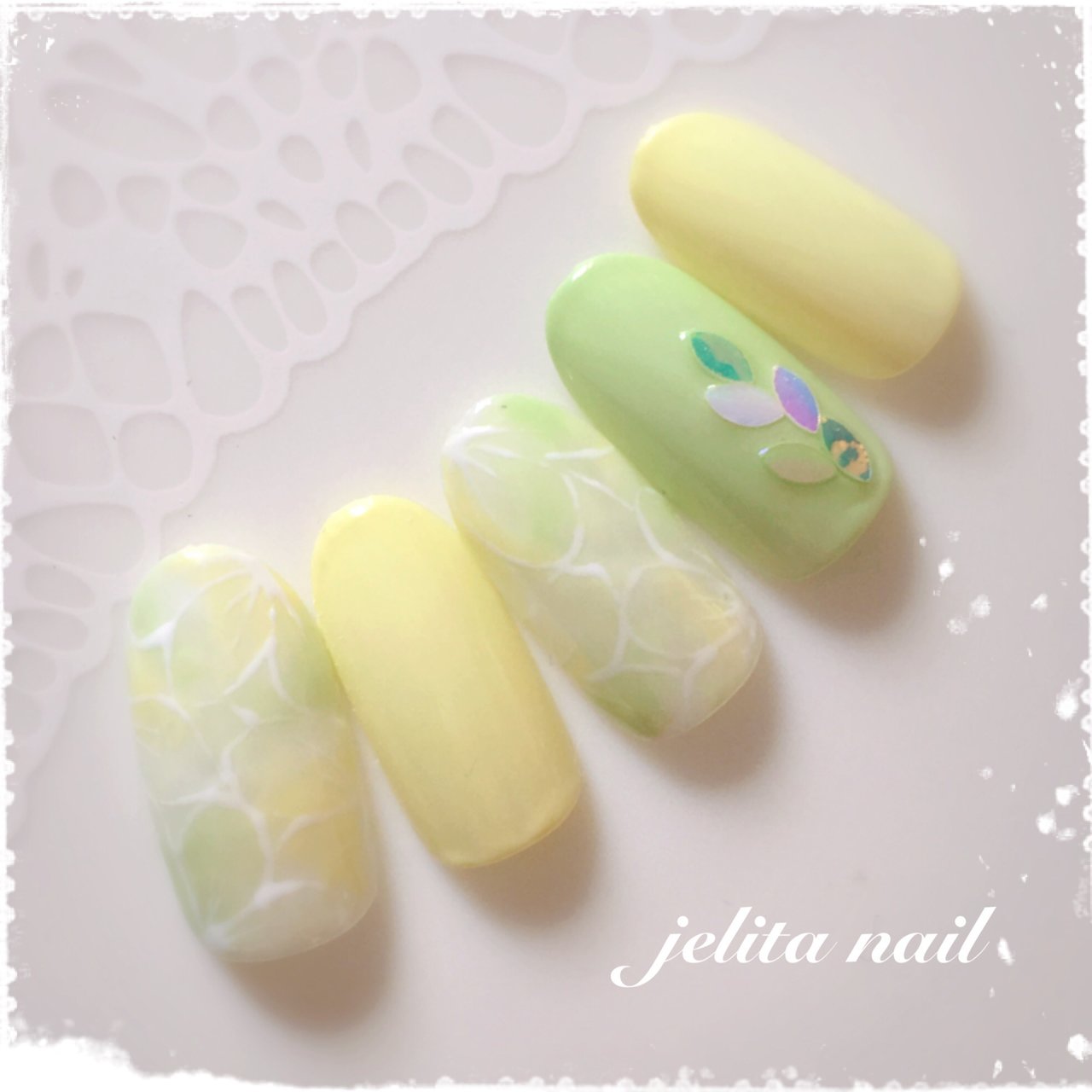 春 フラワー タイダイ イエロー グリーン Jelita Nail 麻生理香子の