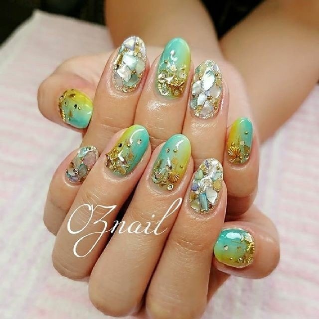 夏 グラデーション イエロー グリーン うんどうかなえ のネイル