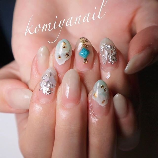 夏 紫 マーブル ネイル