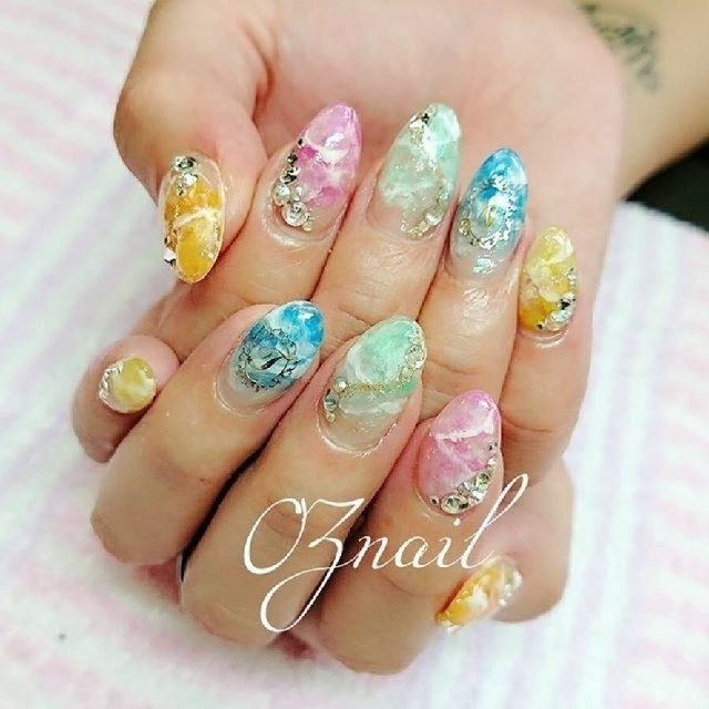 最新夏ネイル 5色違いのカラフル大理石 夏ネイル