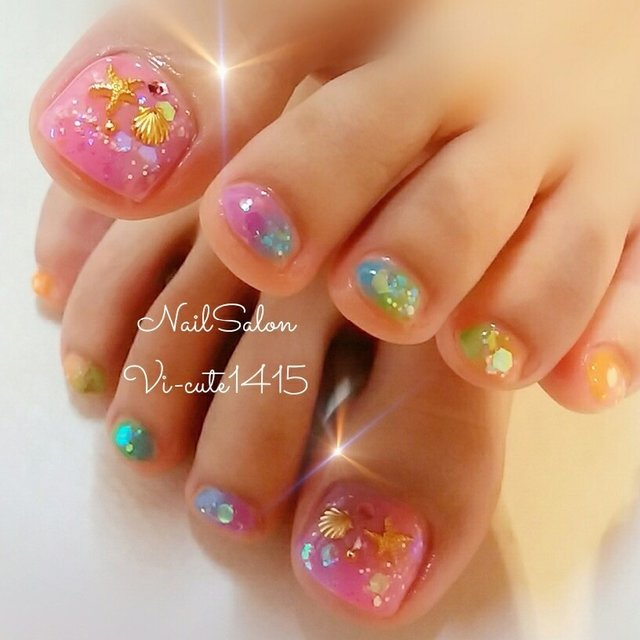 夏 海 フット グラデーション タイダイ Hidekazuのネイルデザイン No