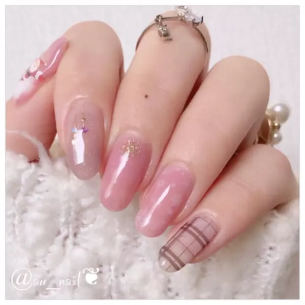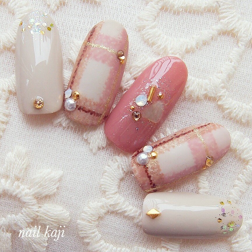 秋 冬 チェック ベージュ ピンク sayaka のネイル