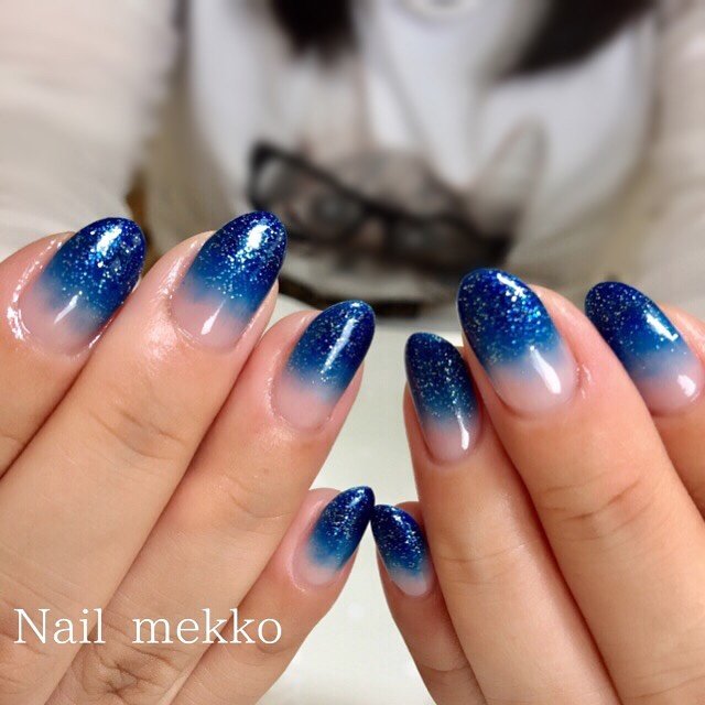 グラデーション ラメ 星 ネイビー シルバー Nail Mekkoのネイル