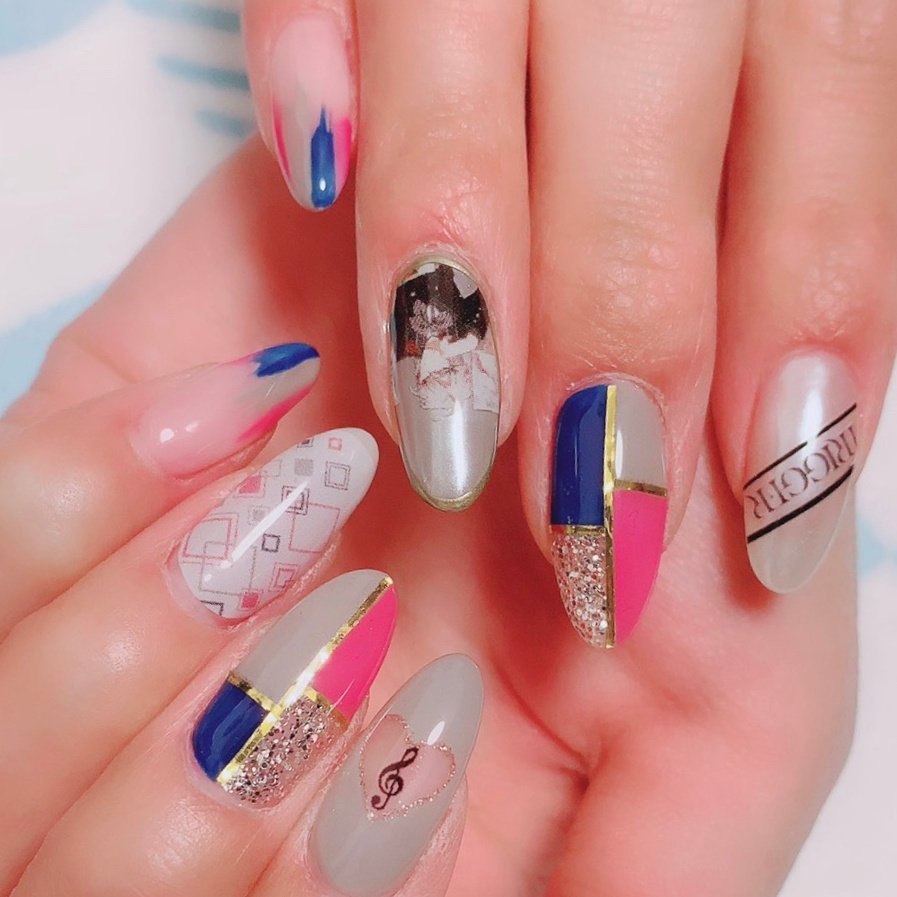 ライブ 痛ネイル ピンク ネイビー グレー Mamimのネイルデザイン No