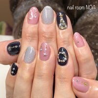 ネイル ネイビー グレー ピンク