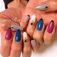 グレーピンクネイビー秋ネイル Amour B Nail 京都河原町ジェル
