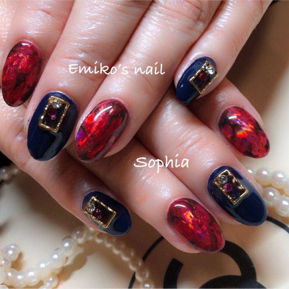 秋 冬 レッド ネイビー ボルドー Sophiachieのネイルデザイン No