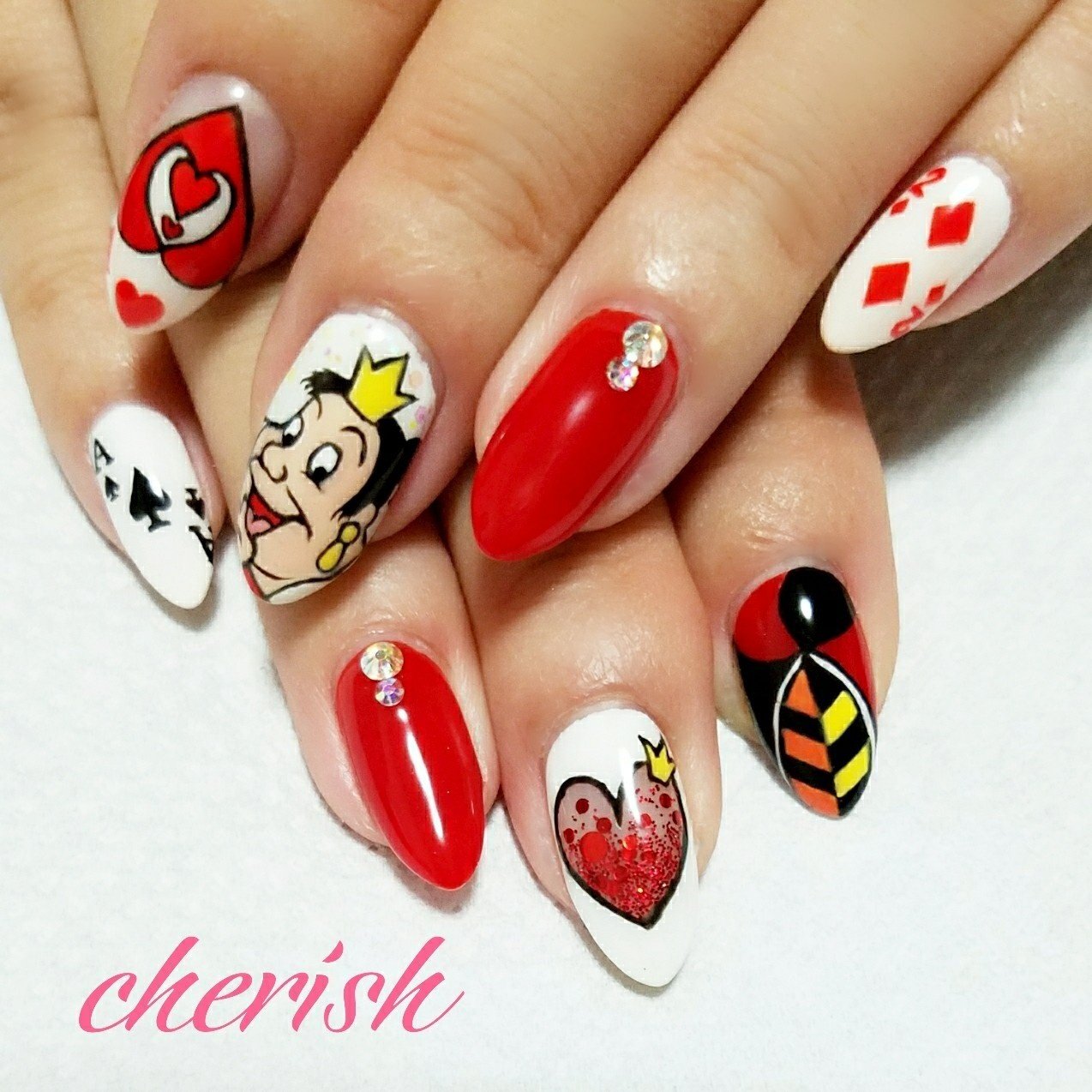 ハートの女王ネイル ディズニー仕様 イラストは全部手書きです