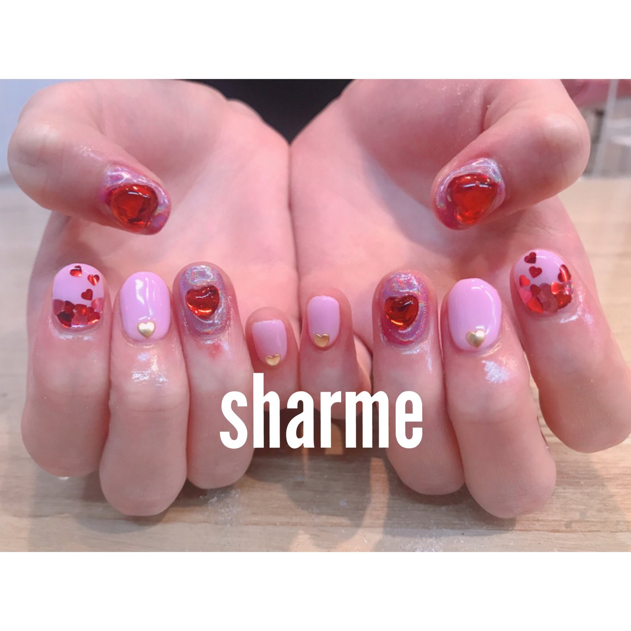 ハンド ラメ アニマル柄 ハート ジェル Sharme Harajukuのネイル