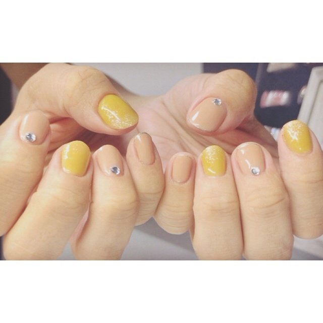New Nail マスタードイエロー グレーでシンプルネイル からし色 って