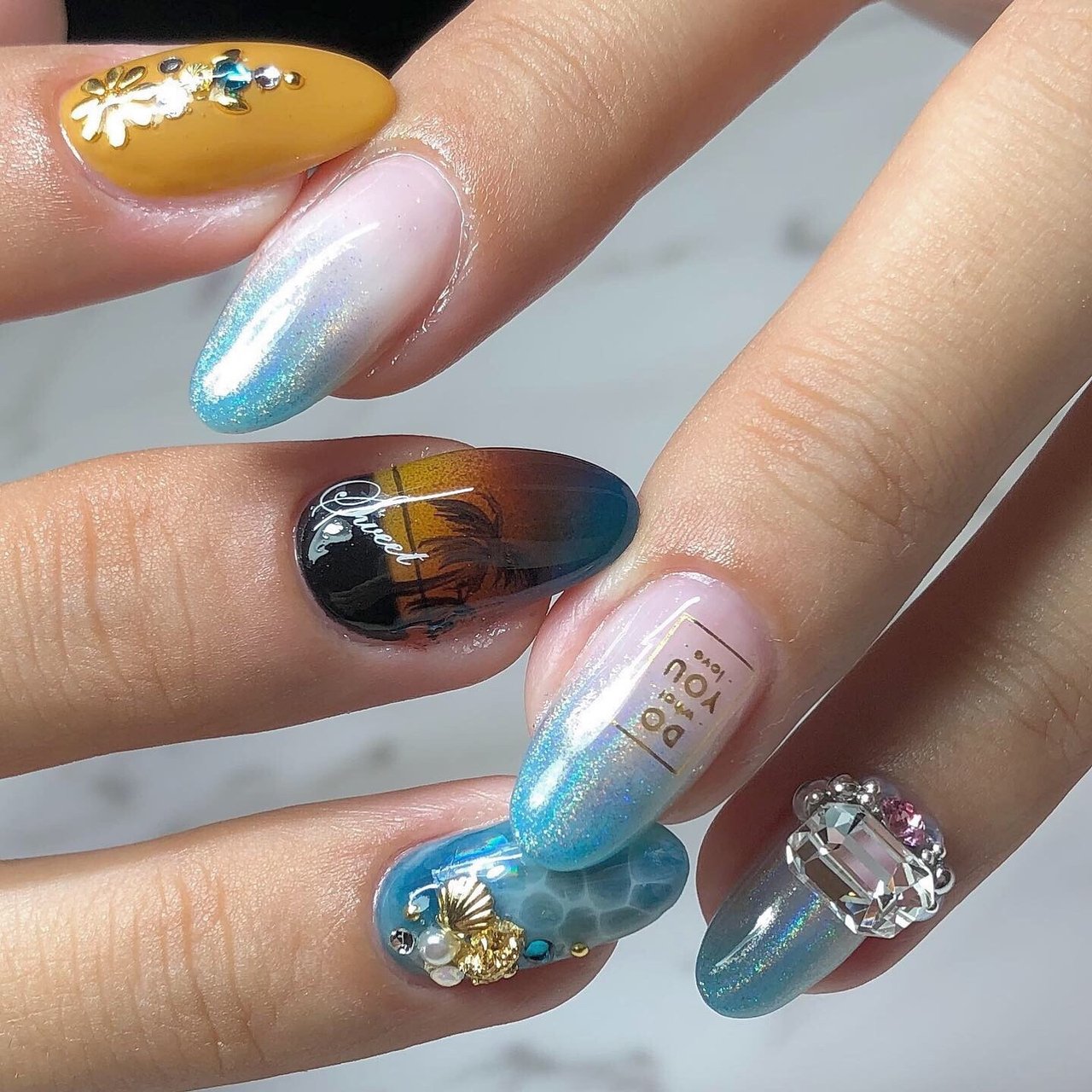 2020年夏 ブルー メンズネイルのネイルデザイン ネイルアート集
