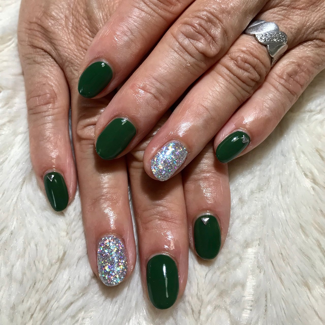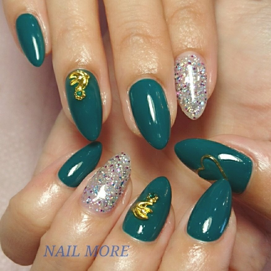 モスグリーンとシャンパンゴールド ネイル セルフネイル モス