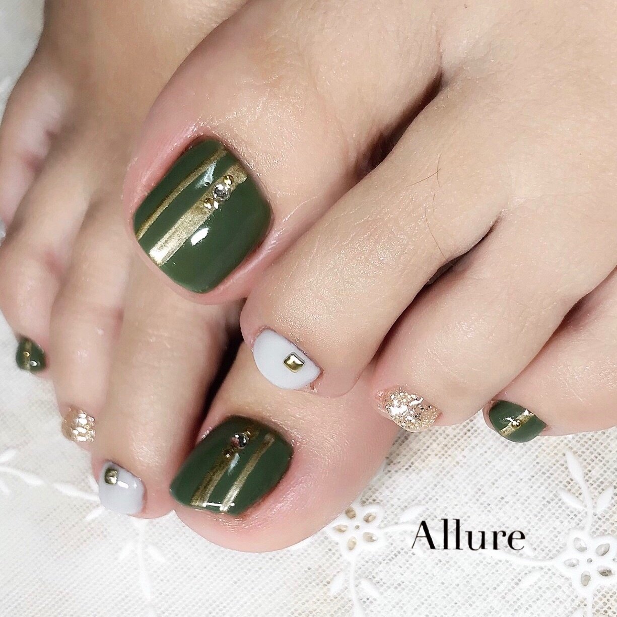 モスグリーンとシャンパンゴールド ネイル セルフネイル モス