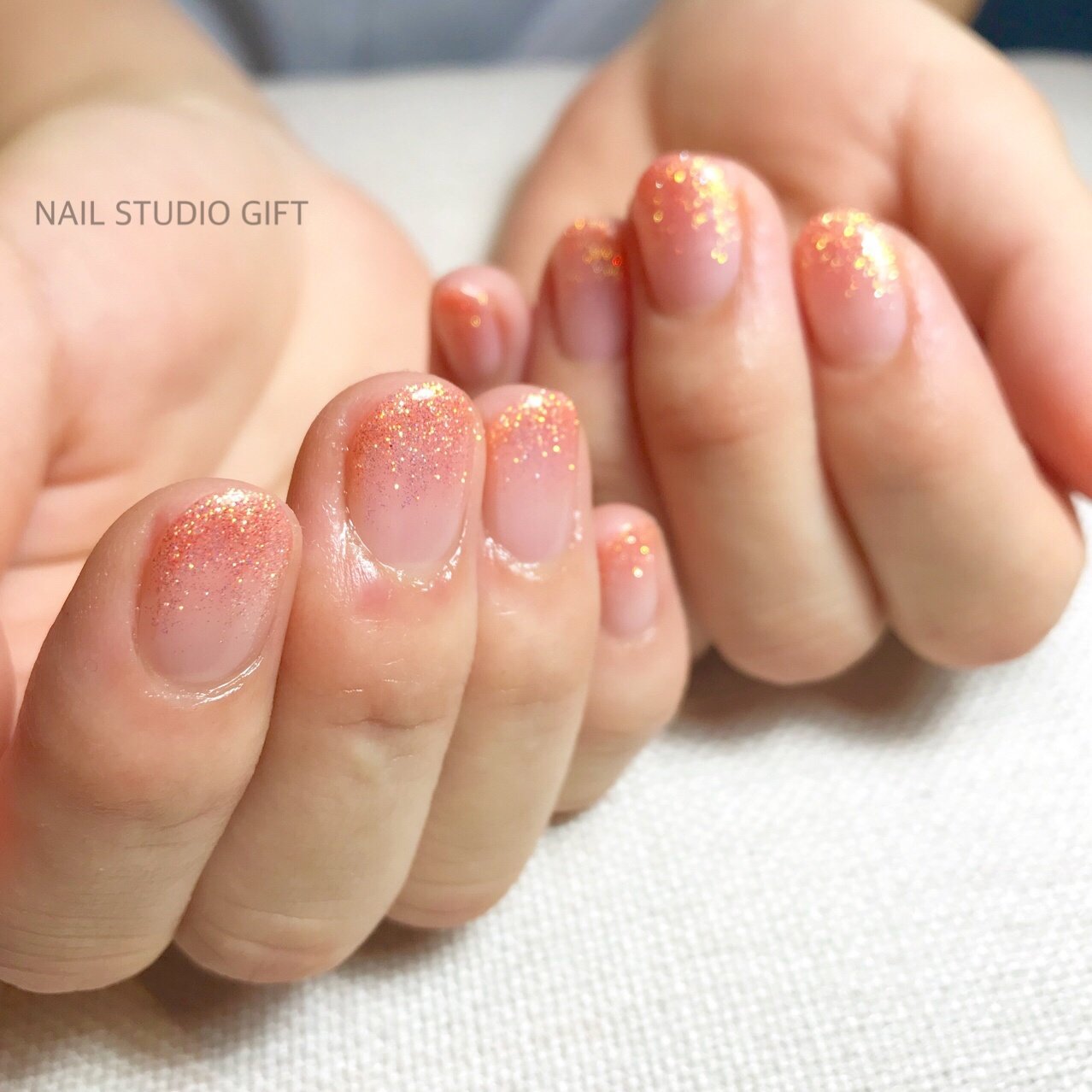 ラメグラデーション オレンジ系をご希望で ゴールドと混ぜ