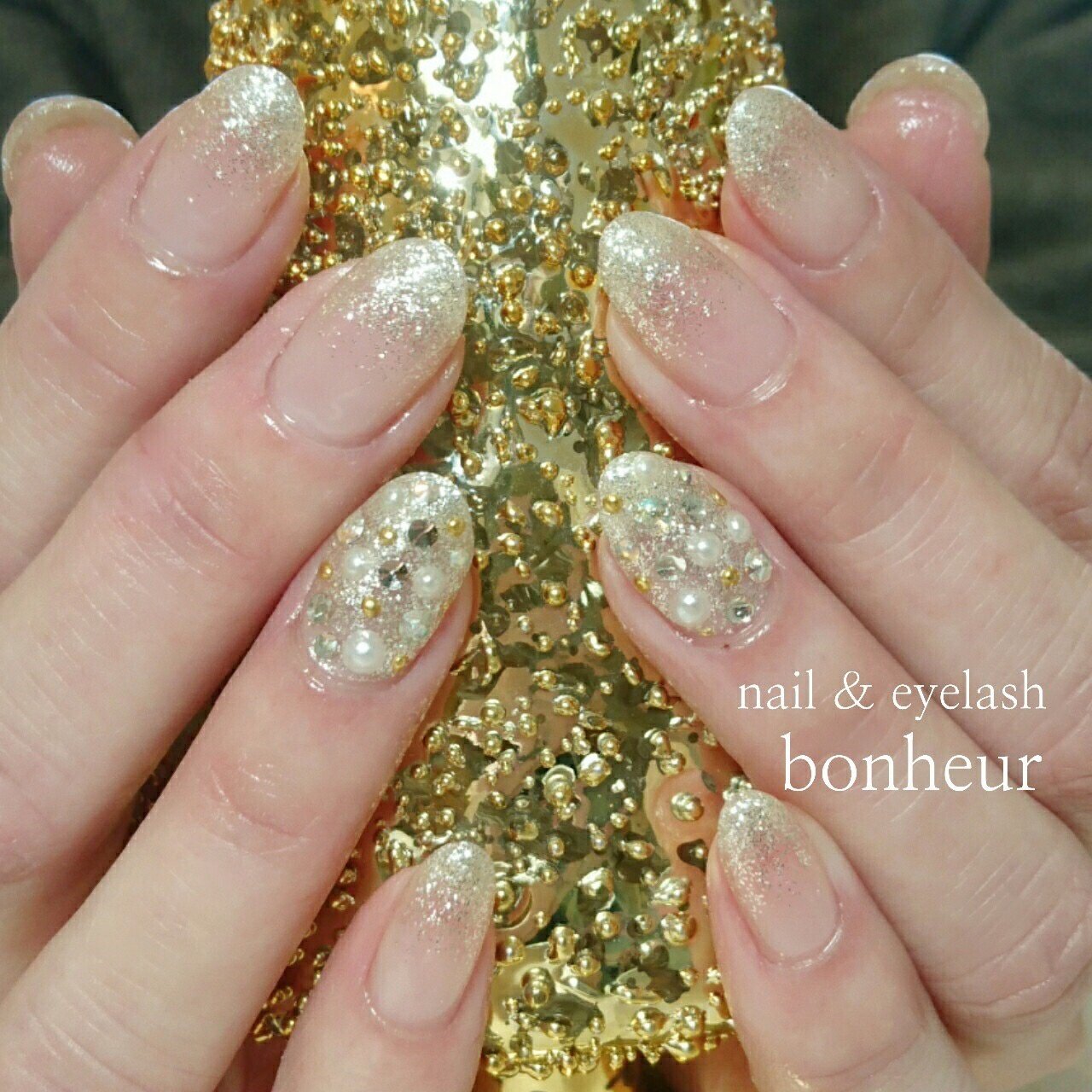 グラデーション ラメ ビジュー ゴールド ジェル Bonheur Iseのネイルデザイン No 2733216 ネイルブック
