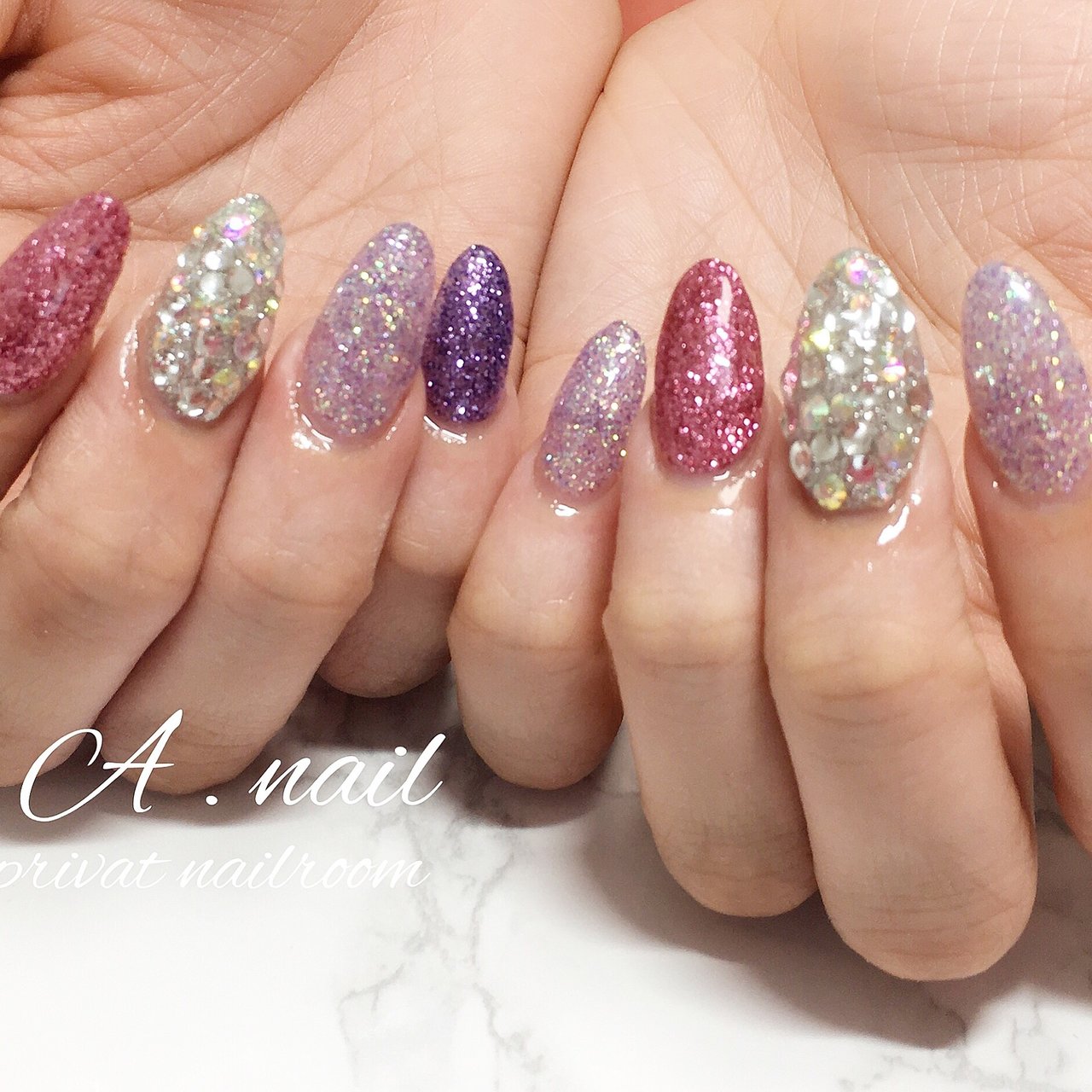 夏 オールシーズン ハンド ラメ ビジュー A Nail Private