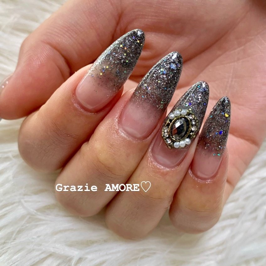 黒のラメグラ ネイルサロン プレジア