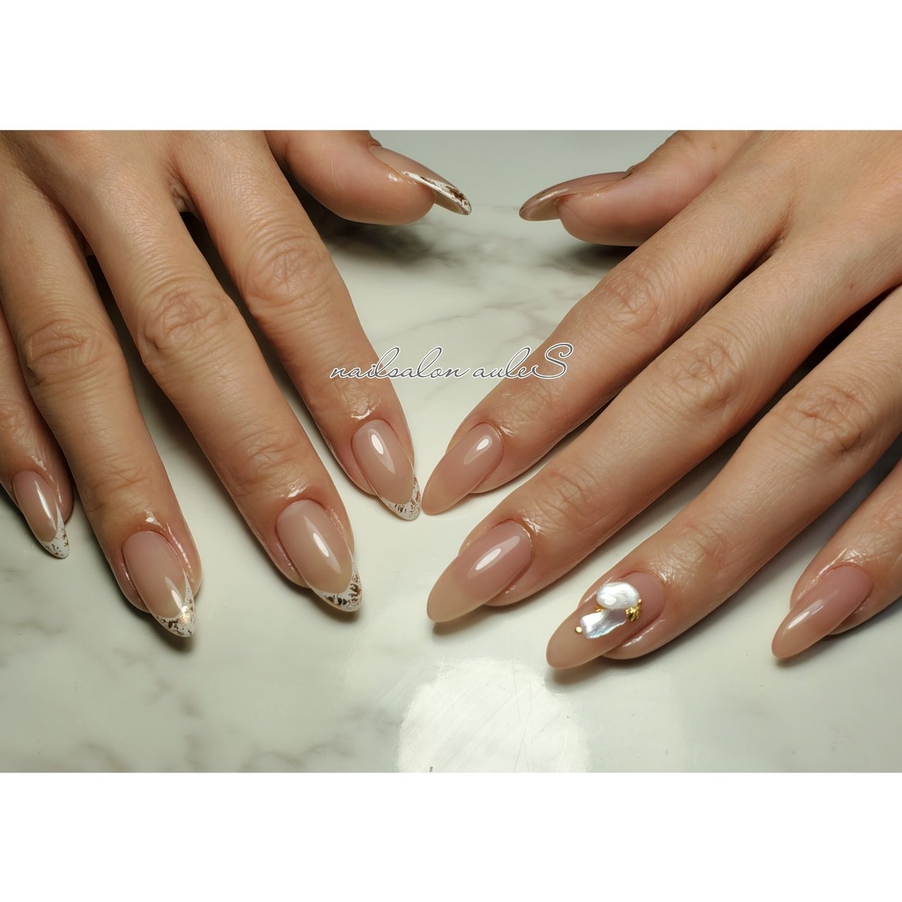 8000円 シンプルベージュラメ ロングスカルプ 倉吉ネイル処 Noa