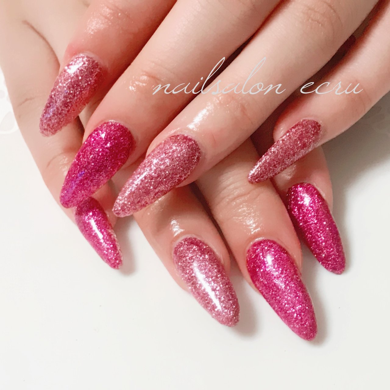 ハンド ラメ ワンカラー ピンク スカルプチュア 豊田 Ecruのネイル