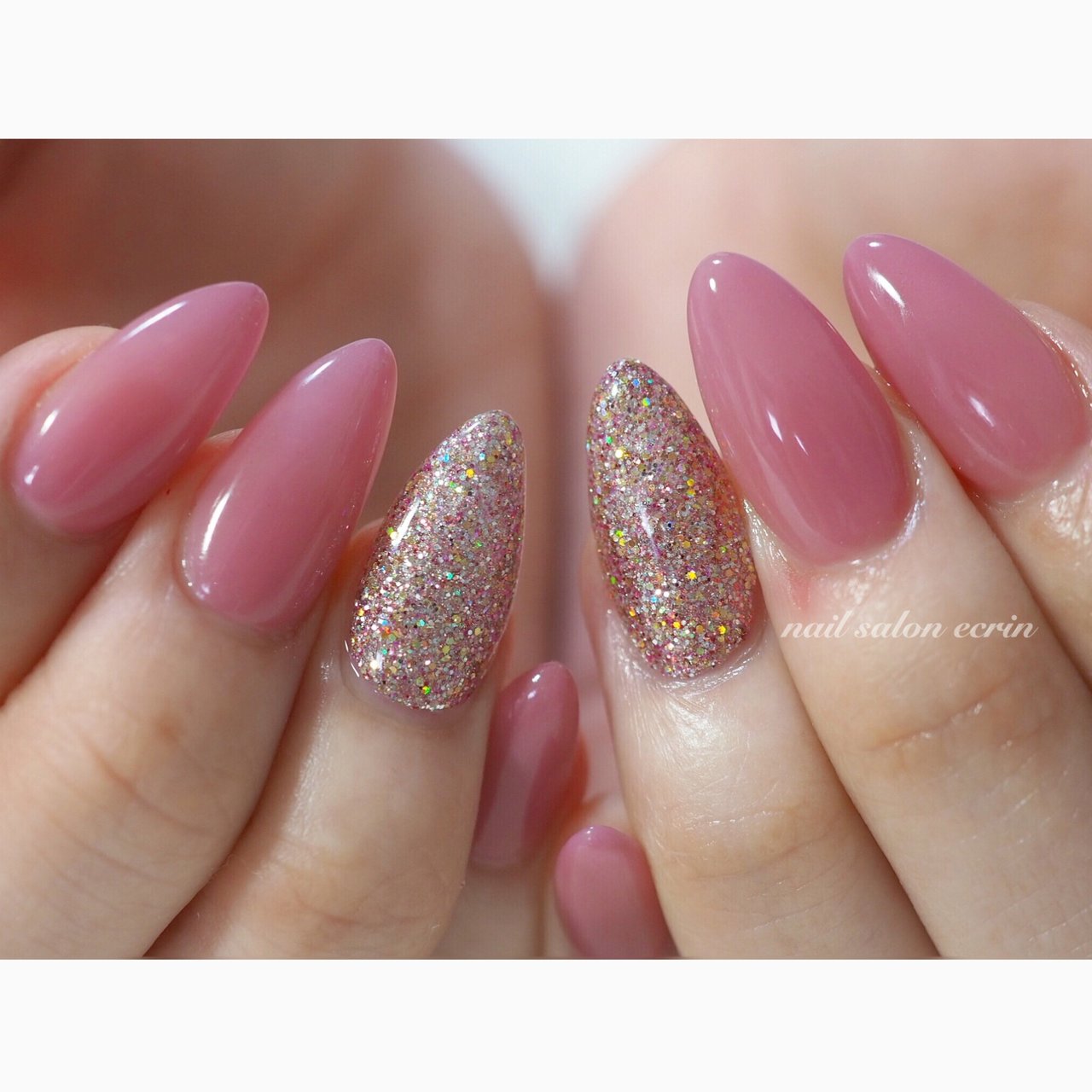 オールシーズン ハンド ラメ ワンカラー ピンク Nail Ecrinのネイル