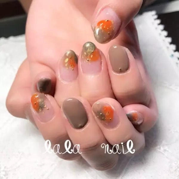 人気の 塗りかけネイル 秋カラーで質感ミックスを楽しもう