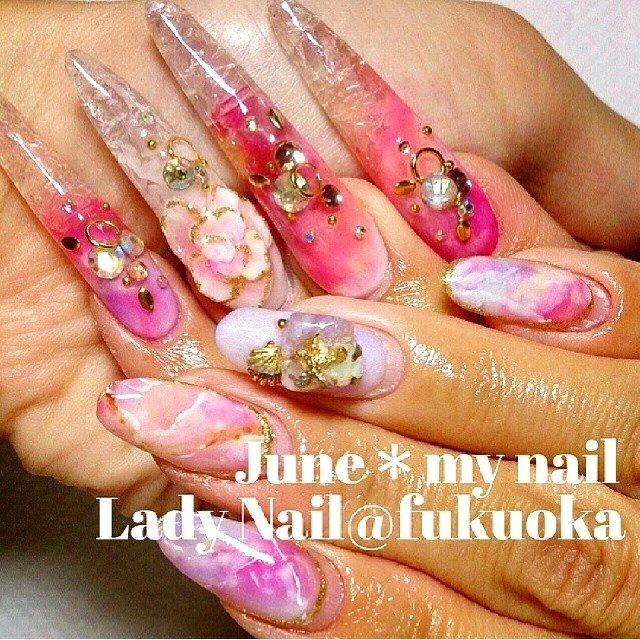 夏 ハンド スーパーロング ピンク スカルプチュア Lady Nail