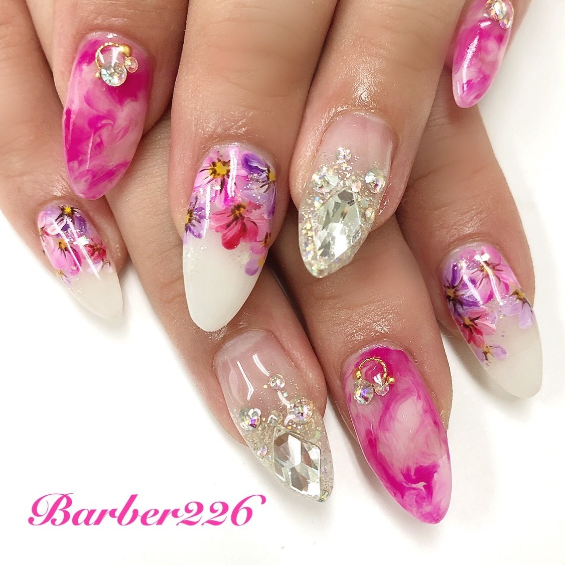 春 夏 ビジュー フラワー マーブル Barber226 Nailのネイルデザイン