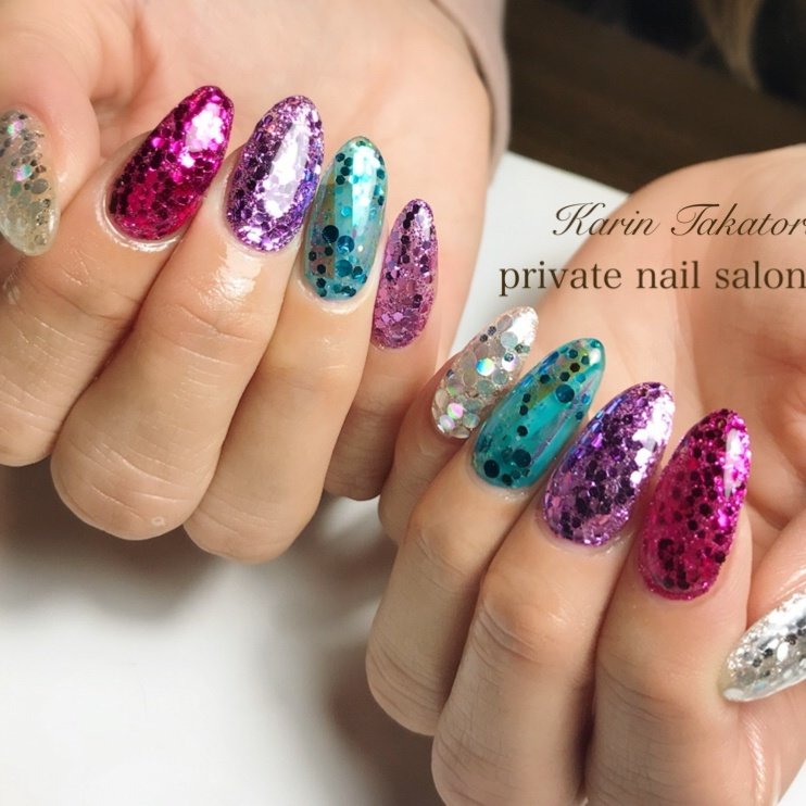ネイル 夏 派手 キラキラ