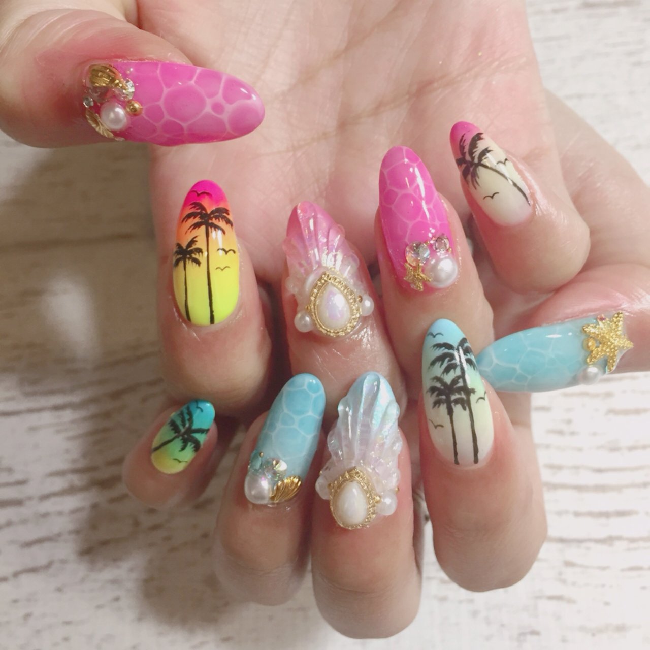 ネイル 夏 派手 シェル