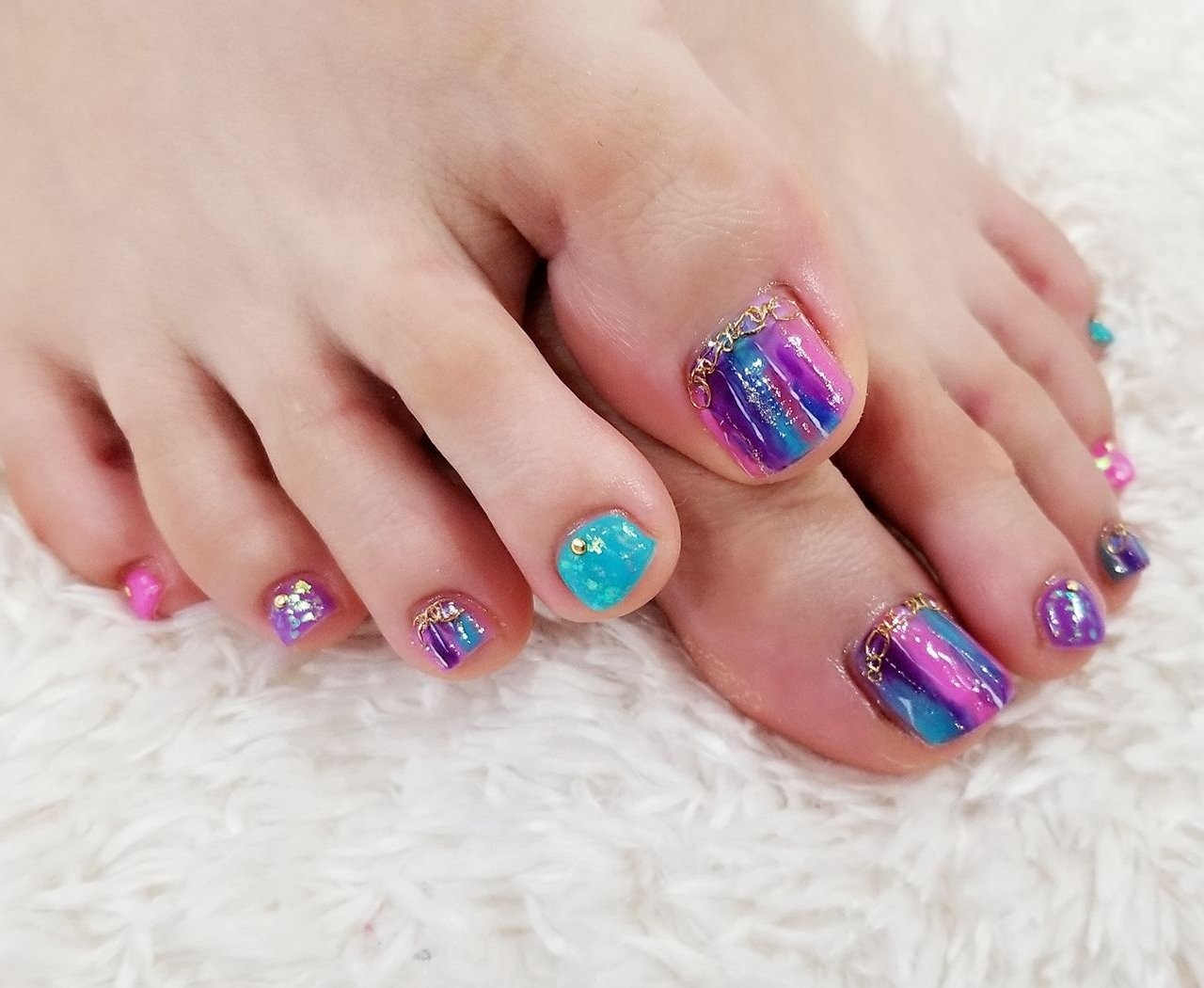夏フットネイル 2018 派手フット ジェル アシンメトリー Nail Salon