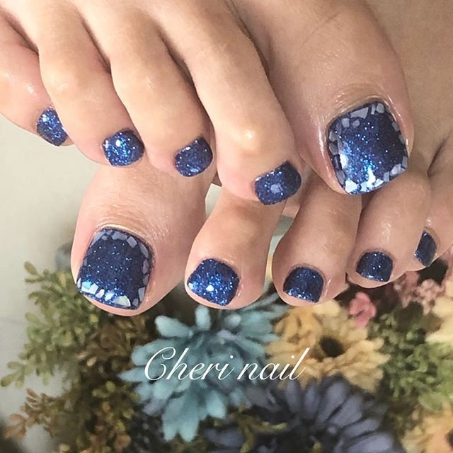 夏 フット シンプル ラメ ビジュー Cheri Nailのネイルデザイン No