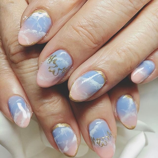オールシーズン ハンド マーブル ピンク ブルー Woogirlのネイル