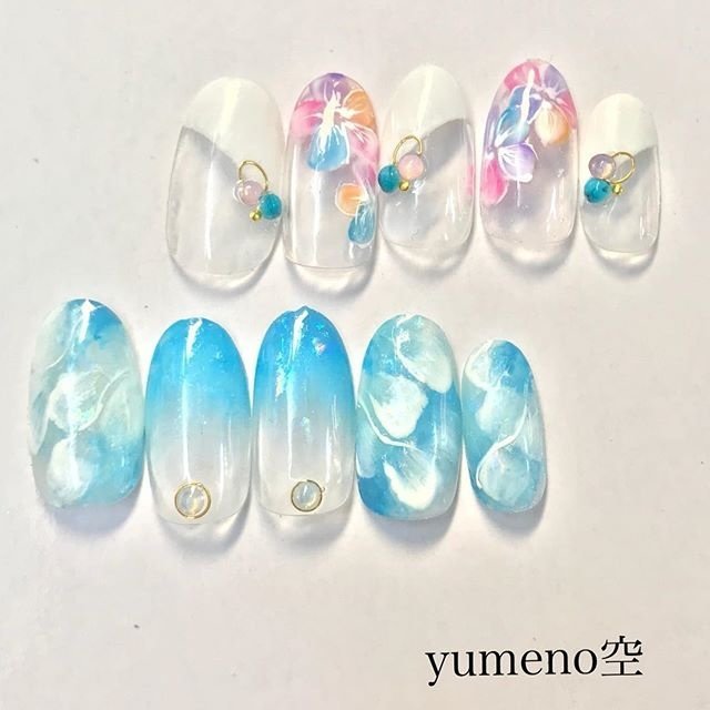 初夏のお出かけに 空をイメージした雲風タイダイネイル Michill