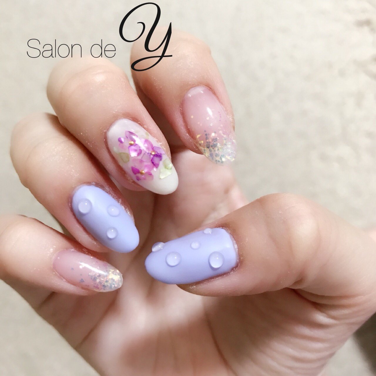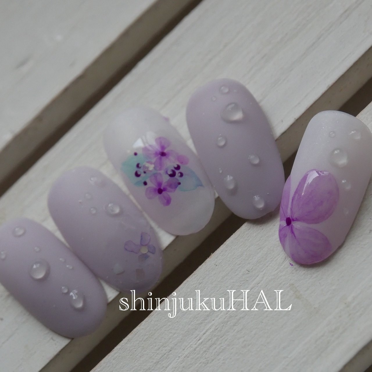 ネイル 紫陽花 水滴