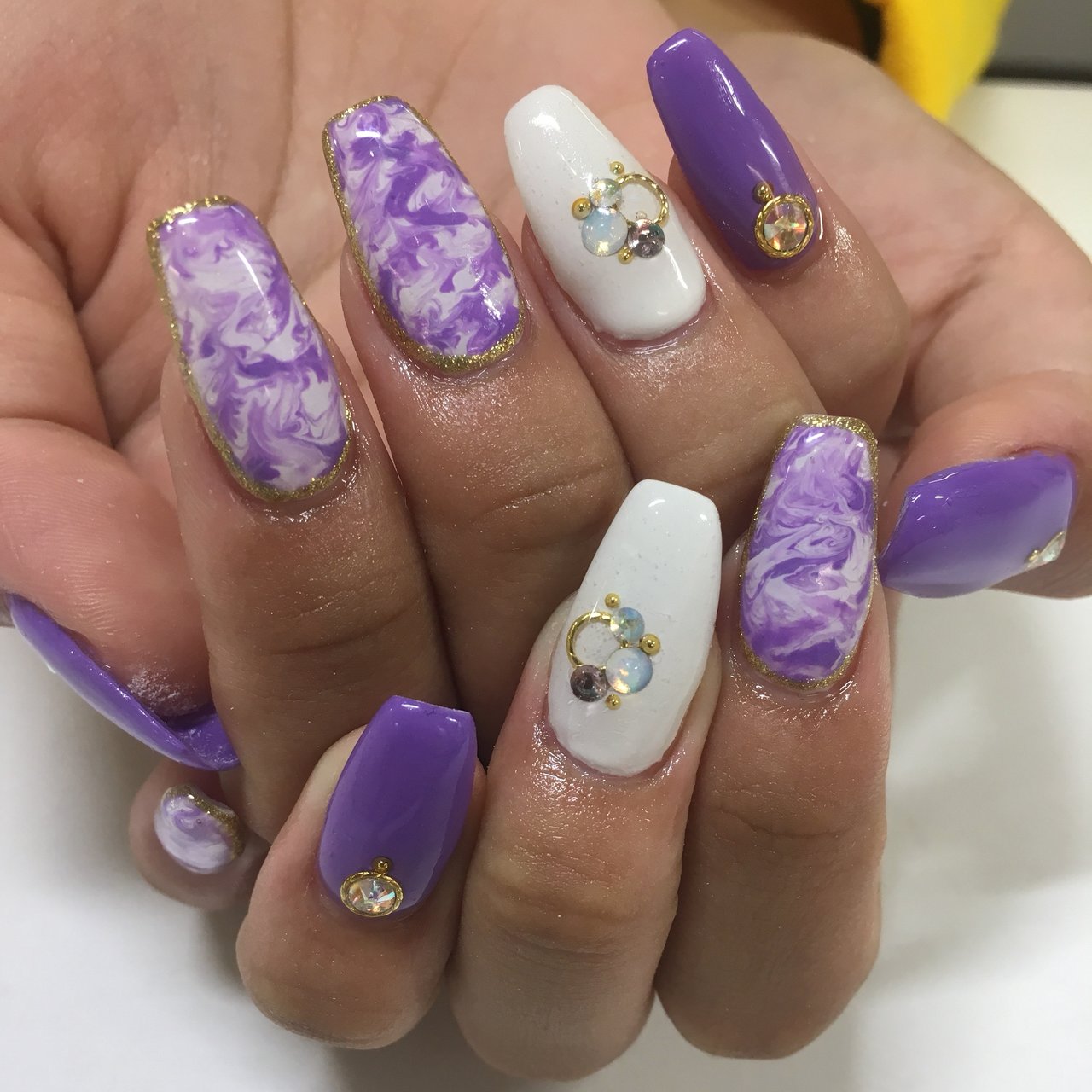 ネイル 紫 マーブル