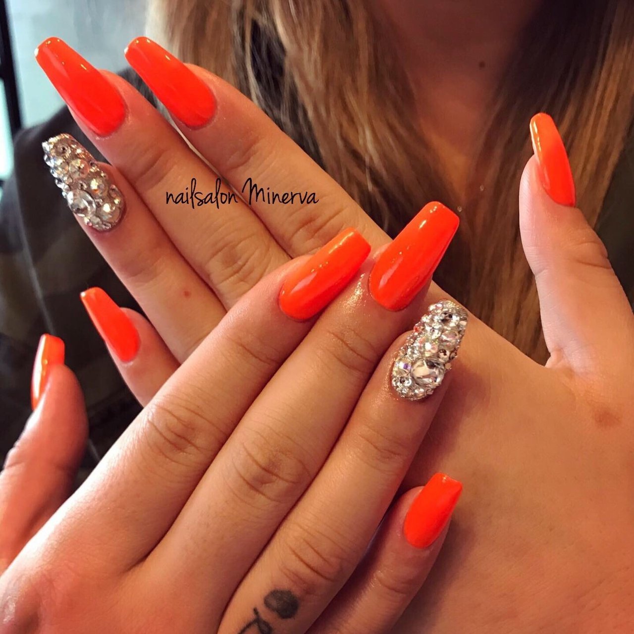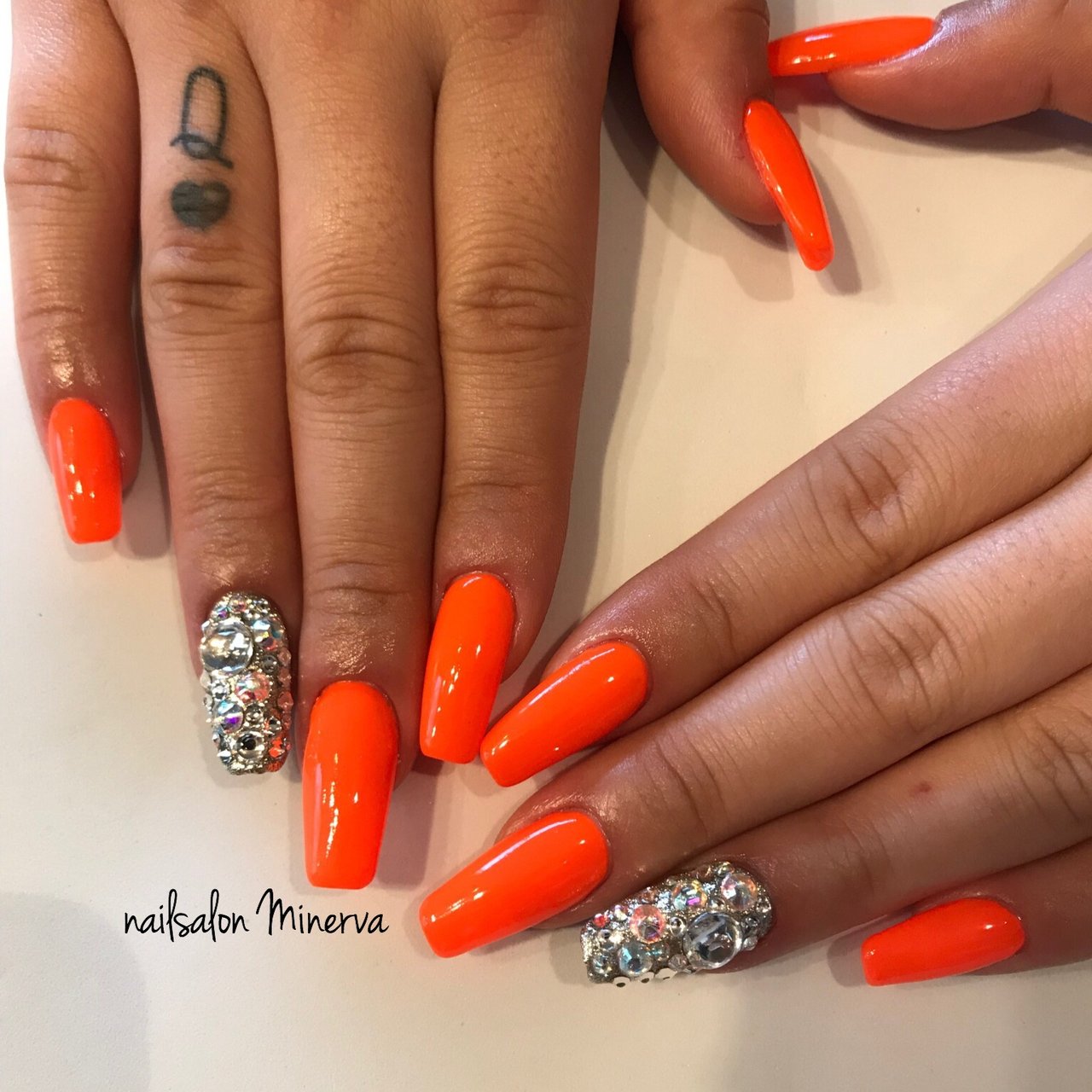 蛍光オレンジネイル o 人 ヴァレンタイン