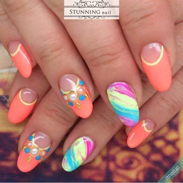 オレンジネイル ネオンネイル 蛍光ネイル ターコイズネイル サマー