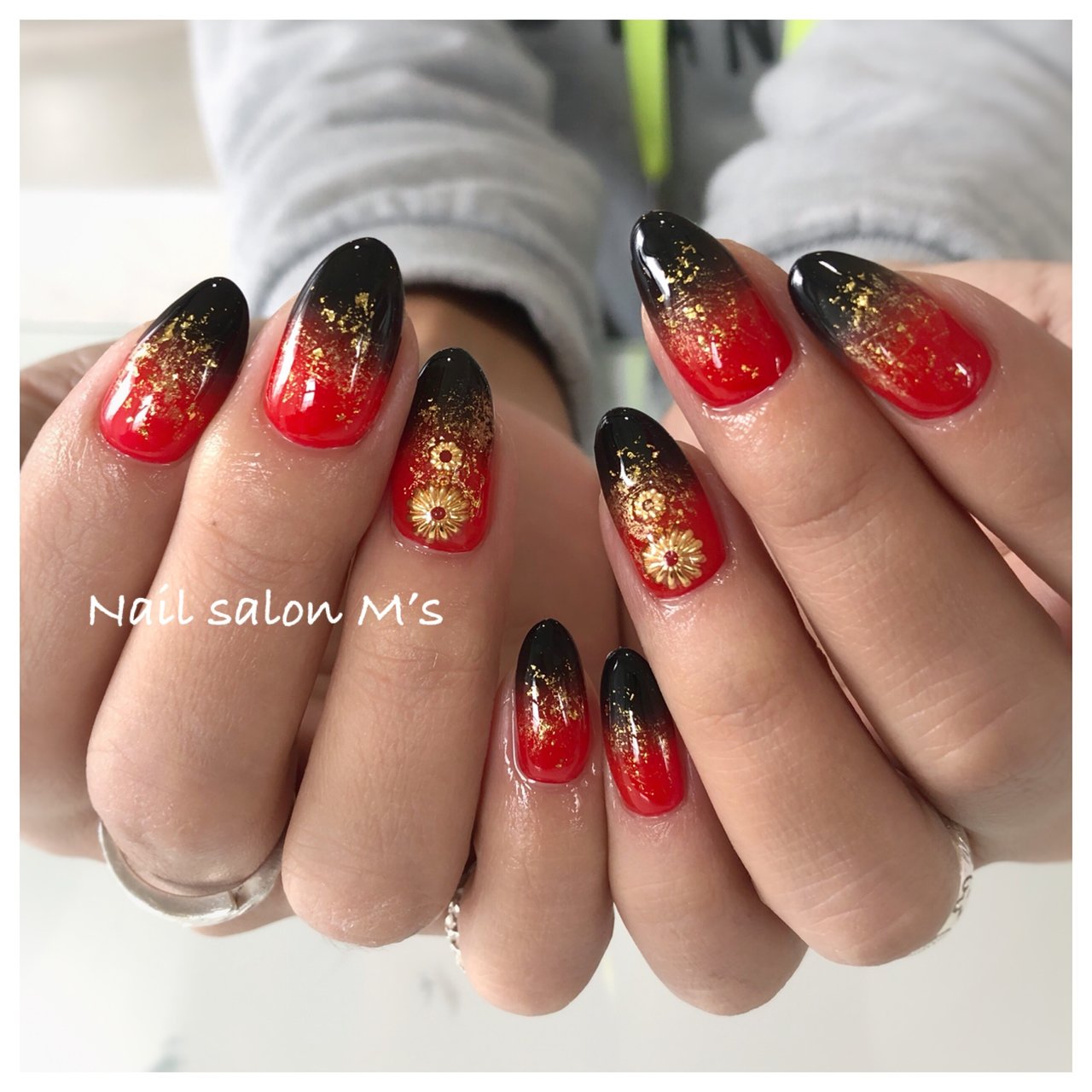 メルカリ 赤黒グラデーション 和風ネイル ネイルチップ 付け爪