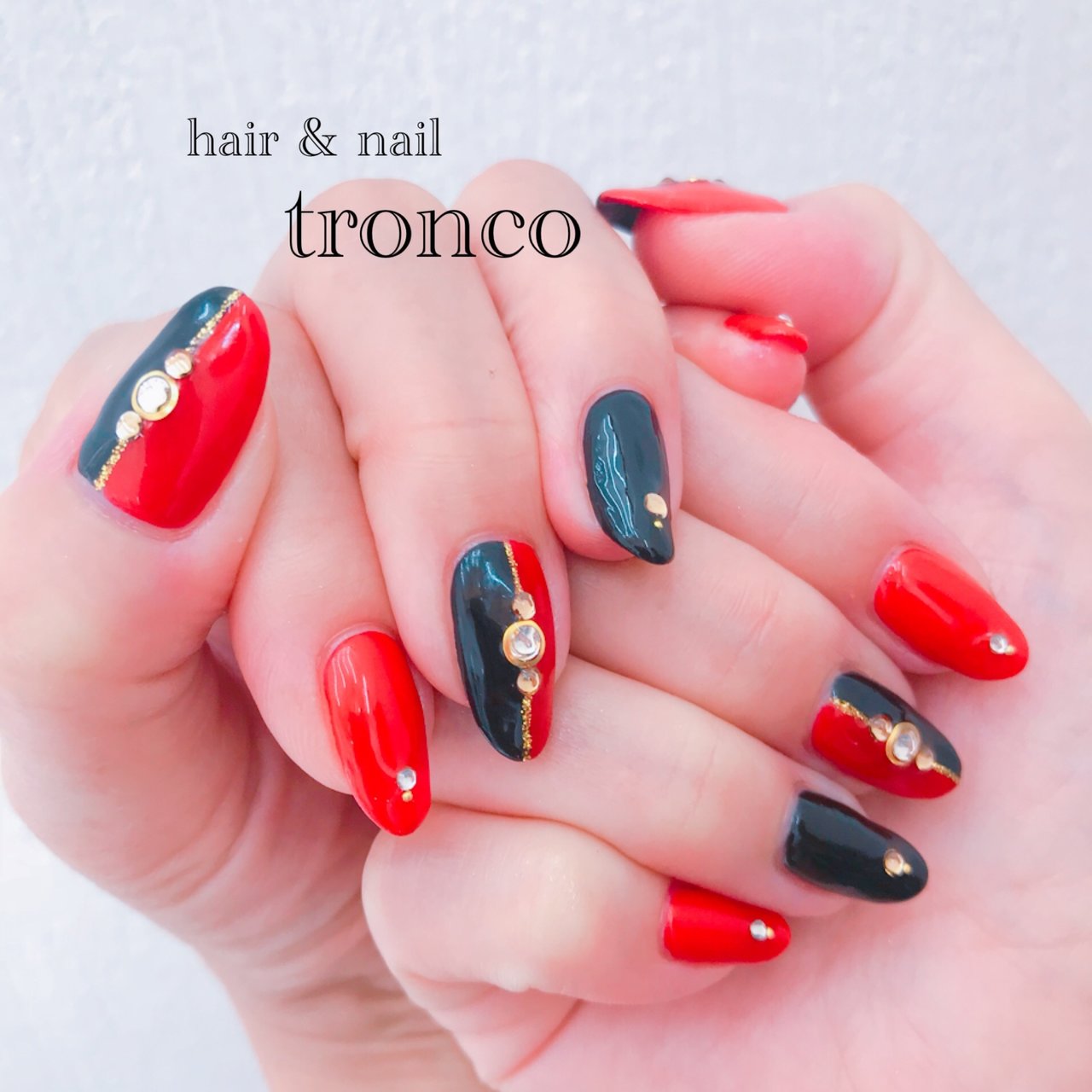 ネイル 赤 黒 金