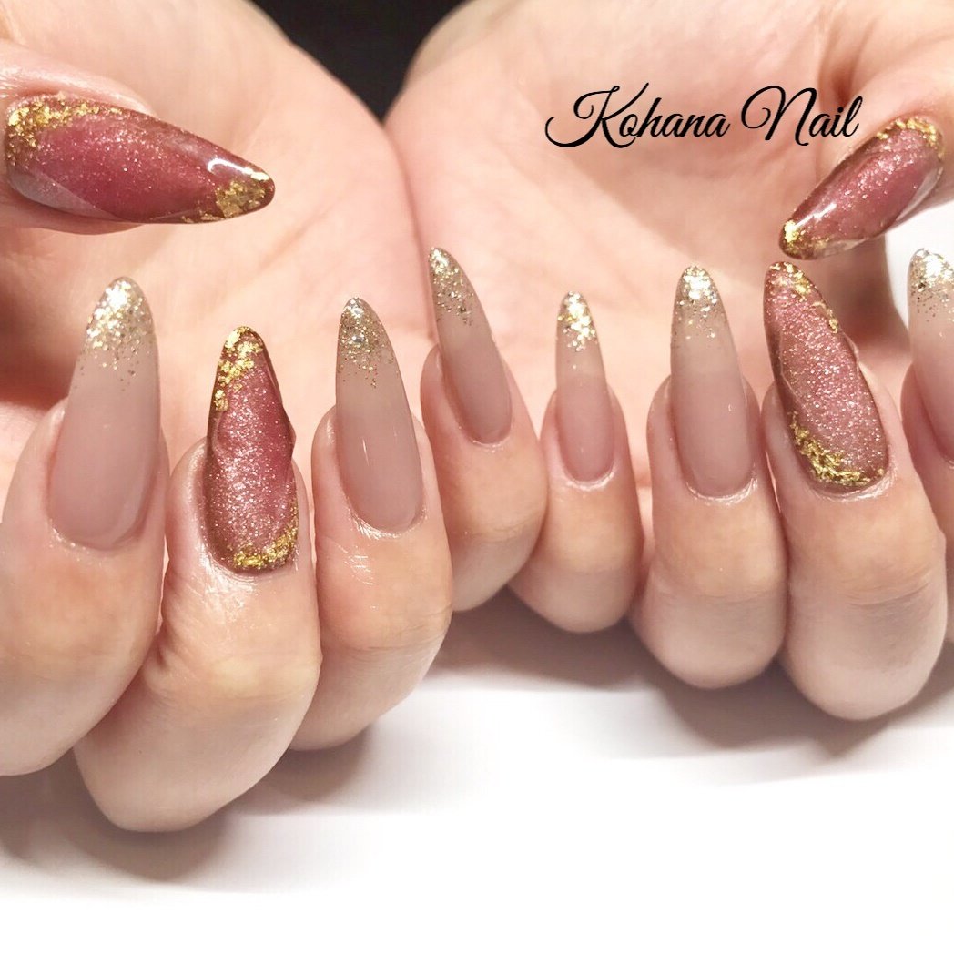 オールシーズン ハンド グラデーション ラメ ロング Houmnailの