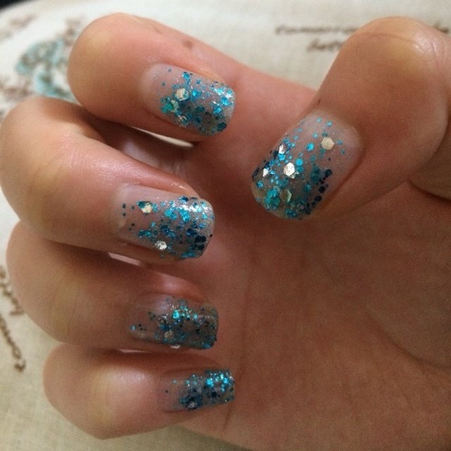 ネイル 青 緑 グラデーション