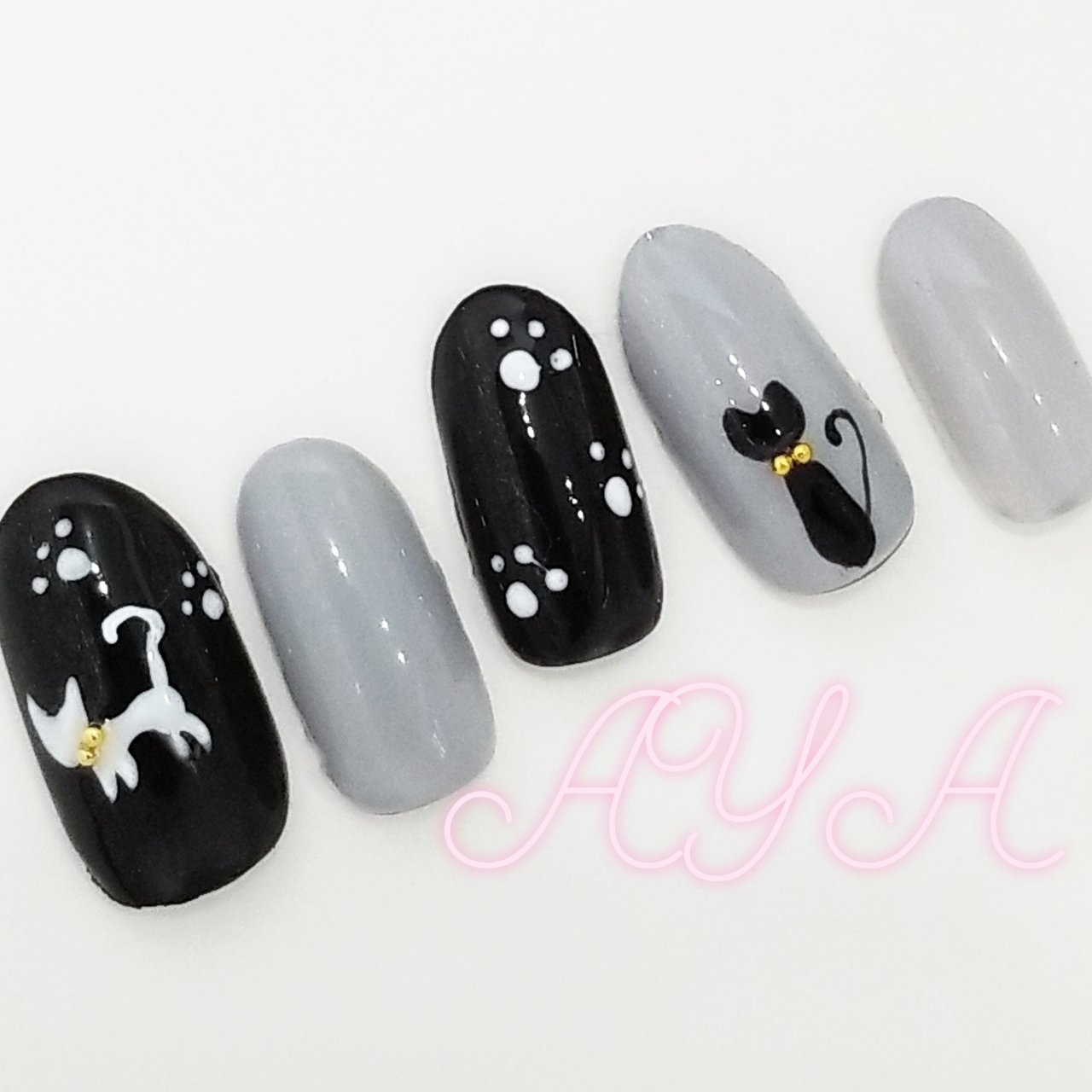 ワンカラー アニマル柄 キャラクター グレー ブラック Achiのネイル