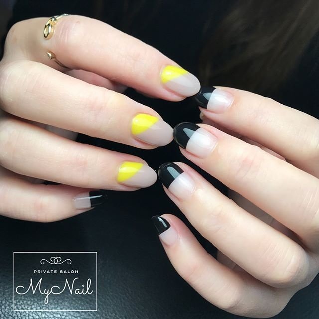 お客様ネイル画像 黒と黄色 名古屋市瑞穂区プライベートネイル